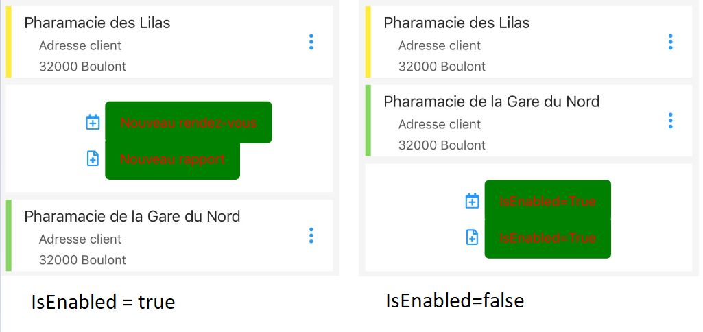 I got a ListView filled with data which contains several buttons. Those buttons have their IsEnabled property binded and they use a style which use a Trigger to change the TextColor / Opacity / BackgroundColor to show to user that a button is either available or not.