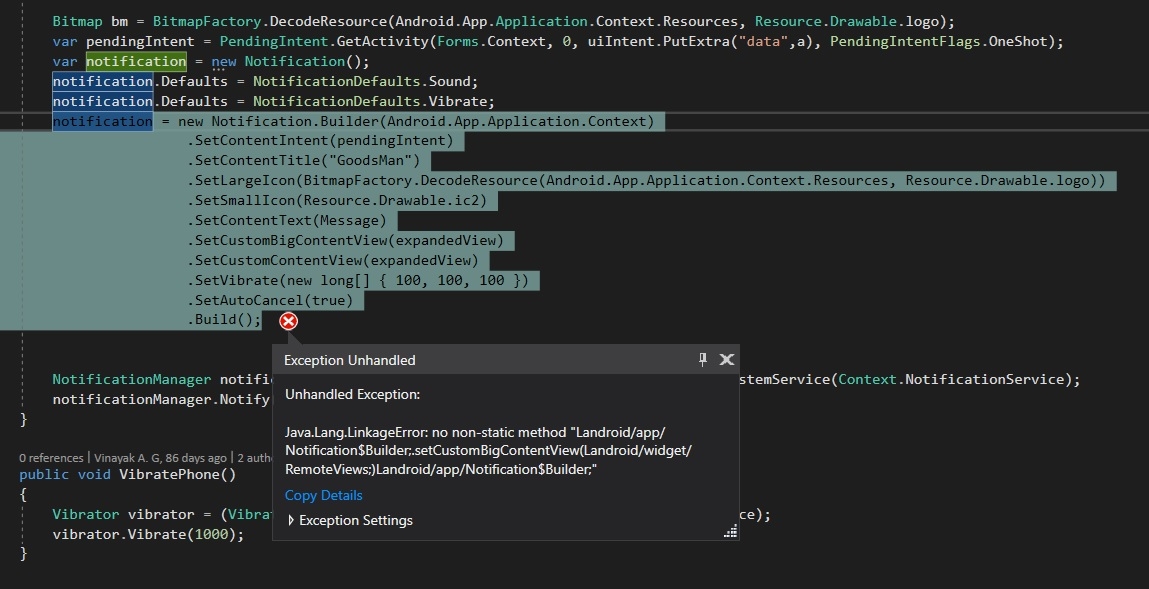 RemoteViews expandedView = new RemoteViews(Forms.Context.PackageName,Resource.Layout.notification_custom_remote);